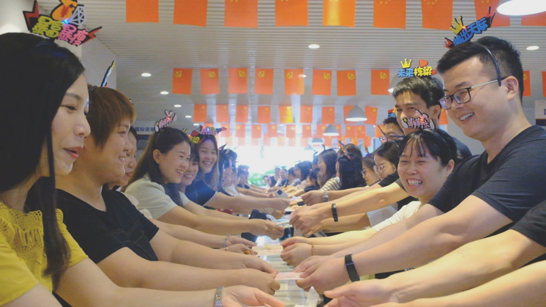 伴隨著歡樂的旋律,大屏幕播放著各個部門為壽星們錄制VCR祝福視頻,同時,小伙伴們將精心制作的生日賀卡寫上專屬生日祝福,贈送給壽星小伙伴們。一句句祝福熱情而真摯,一個個笑容甜蜜而動人,不管是祝福者還是被祝福者,每個人心中都蕩漾起不一樣的溫情與感動。