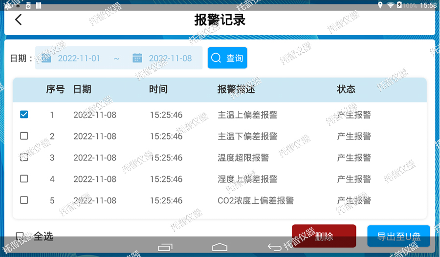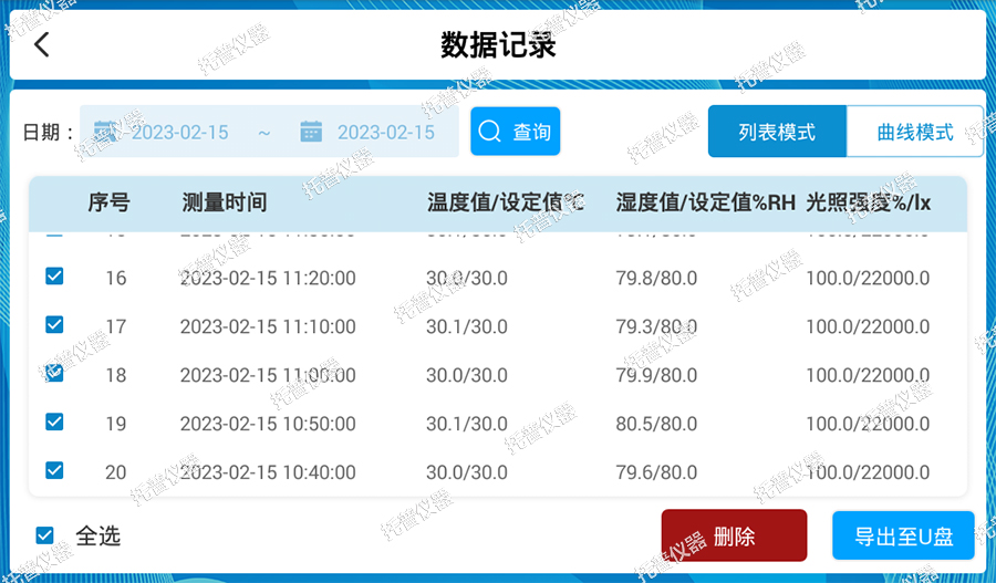 數(shù)據(jù)實時記錄:可查看當前實驗的溫濕度,以及設定值也可查詢歷史記錄。